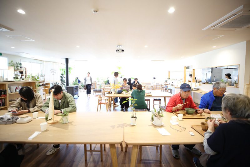 玉木「大事なポイントのひとつは、うちの調理スタッフだけが学ばせてもらうために来て頂いているのではなくて、料理人のプロとして皆さんそれぞれの地域でお仕事をされているし、私たちもプロとしてやっていかなければいけないという立場で、tamaki niimeの服を売るにしても飲食で料理を提供するにしても、共通する心構えってありますよね。あ、こうゆう事をしてもらえたらお客として凄く嬉しいとか、楽しいとか。感動とか。やっぱりそうゆう事って人から伝え聞いただけではよくわからないので自分たちも体験するべきだと思うから。率先して買い物に行けとか、色んな経験を積めってスタッフにもよく言って聞かせるんですけど、それをなかなか忙しいうちのスタッフが西脇から出て、色んなところへしょっちゅう視察に行けるかというとそうは行けないからこそ、せっかくのこの「腹ごしらえ会」という機会を凄いチャンスだと捉えてもらってスタッフ皆、食作人さんのごはんを頂くという。そこで今まで食べた事のない新しいものに出会う感動とか喜びとか、そういうものを経験値として積んで、それをまた自分たちのモノづくりに活かす、と。服づくりや接客で、自ら体験した事を活かして自分なりに新しい、プロとしてのアイデアを育むというか。そんなきっかけにしたいなというのはあります。」