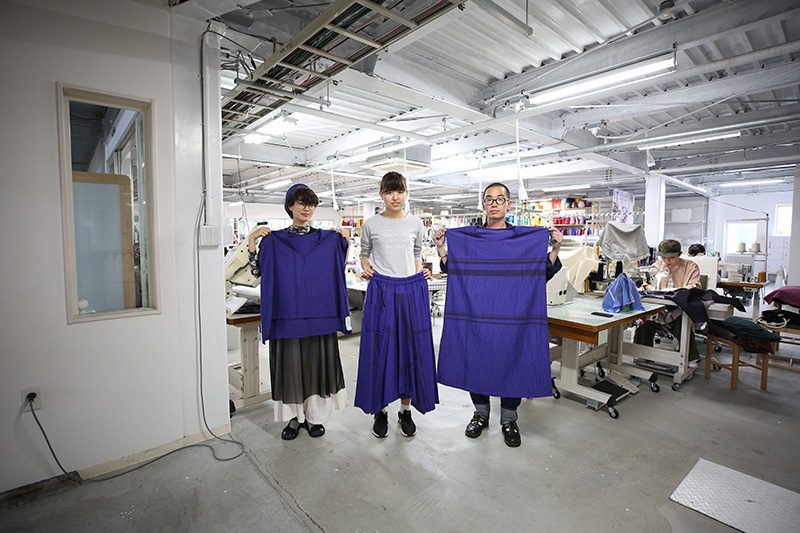 玉木と酒井がこれまで二人三脚で構築しtamaki niimeを特徴付けてきた、身につける人を選ばず誰もに愛されるモノづくり。それに加えて、今回スタートしたのは、スタッフそれぞれの能力を引き出し各世代・各顧客ごとの嗜好に向き合ってゆくという、新しいクリエーション。tamaki niime全体で取り組んでゆくこの新たなモノづくりについて、スタッフの玉木睦美(人事など担当)と藤本尚子(ニットなど担当)からも話を聞いてみる。