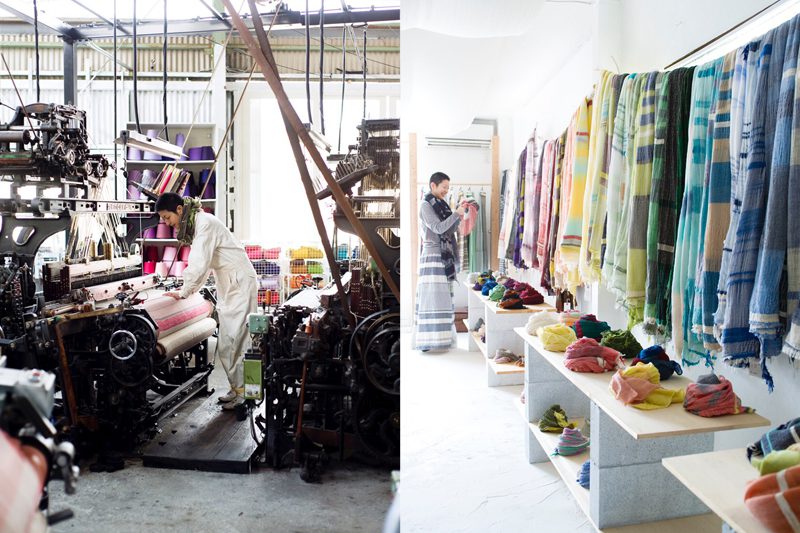 As a writer, I met Ms Tamaki and Mr Sakai when they first introduced two belt-type power looms to their former Lab, which was a small remodelled warehouse, and began weaving Banshu-ori fabrics with their own hands. The unconventional method of the designers stepping into the realm of traditional textile craftsmen and practising creation, which disregards theory, is a big surprise not only to those involved in fashion and Banshu-ori but also to the general public living in the production area. At the same time, the novel approach was very vivid and above all, cool. A childlike curiosity and inquisitiveness, in an old-fashioned world.