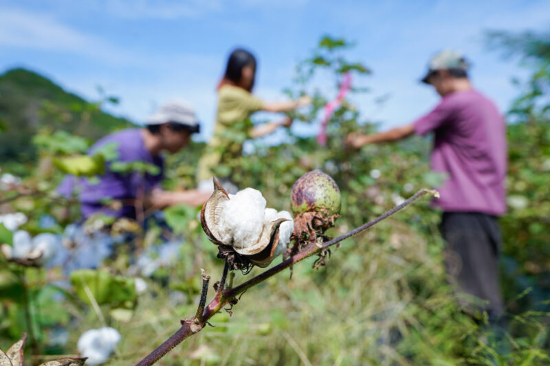 柳 「秋冬にかけて、順次開いていくんでコットンは。だからこの9月中旬ごろから、11月末とか霜が降りる時期まで収穫が続いて。で、今はそれと合わせて今年取り組んでいる土づくりがあって。“菌ちゃんの土づくり”(※)って言うんですけど。」