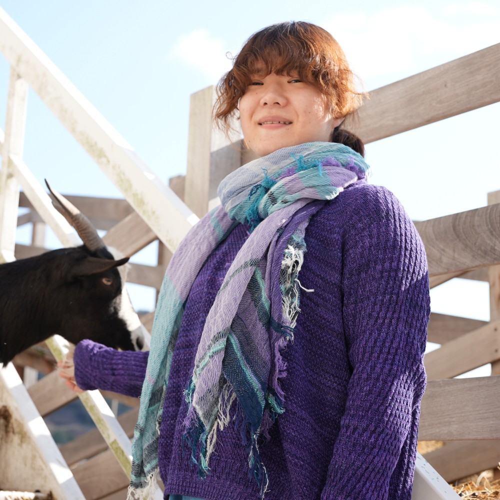 We created soft and airy shawl by weaving loosely and slowly.