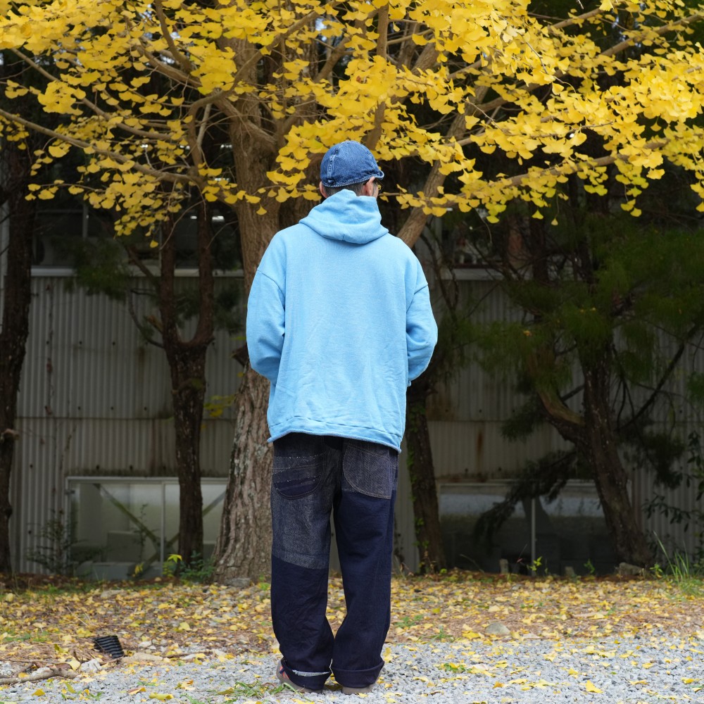 これまでつくりあげてきたデニムの中でも群を抜いて、やわらか。綾織をベースに、色が主役になるように緯糸を表地にがっつりと出しきれいに見える形、大きさ、配置を追及しました。刺し子のような、手仕事感のある色が主役のデニム。