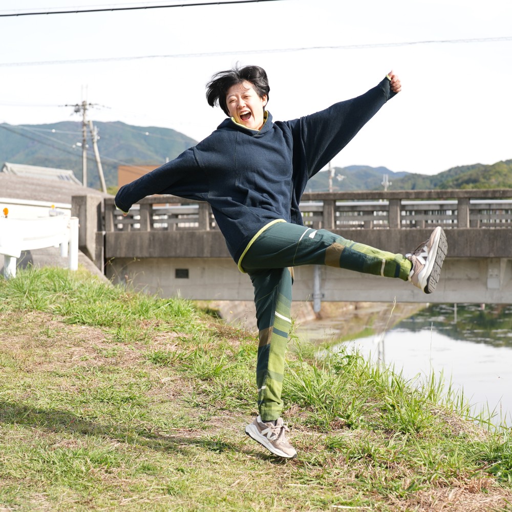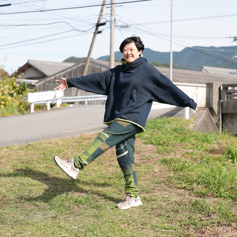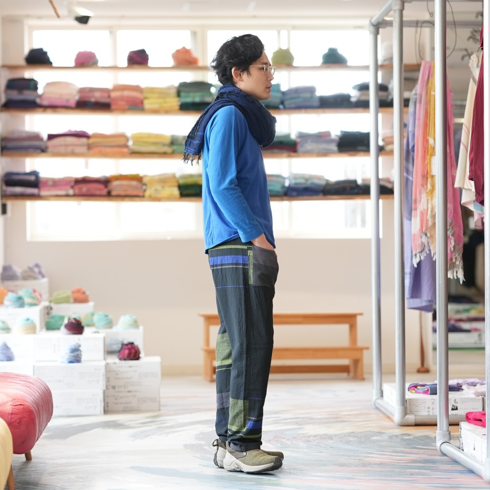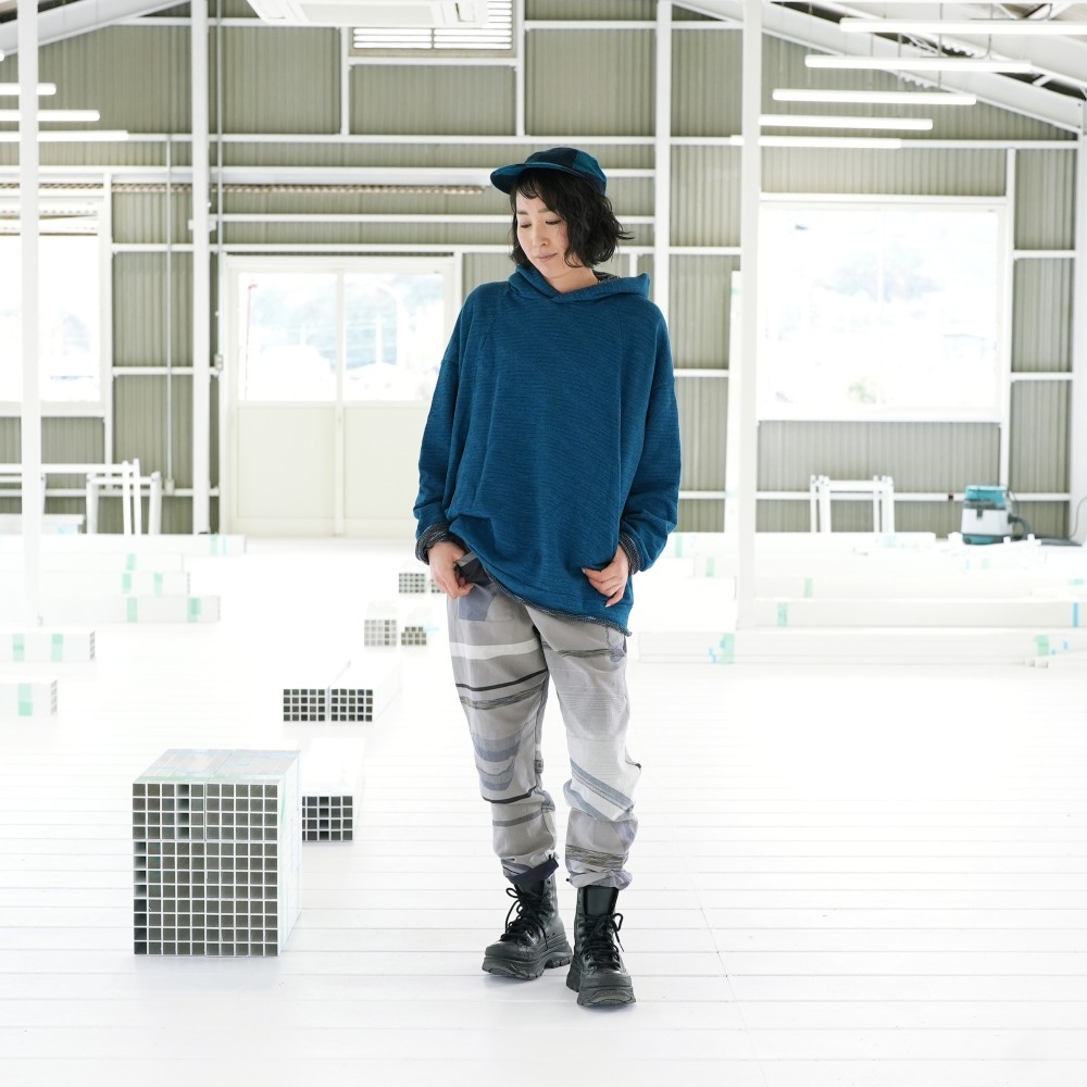 It's designed by “unagi no nedoko” as a modernistic monpe and was made with tamaki niime’s texture.