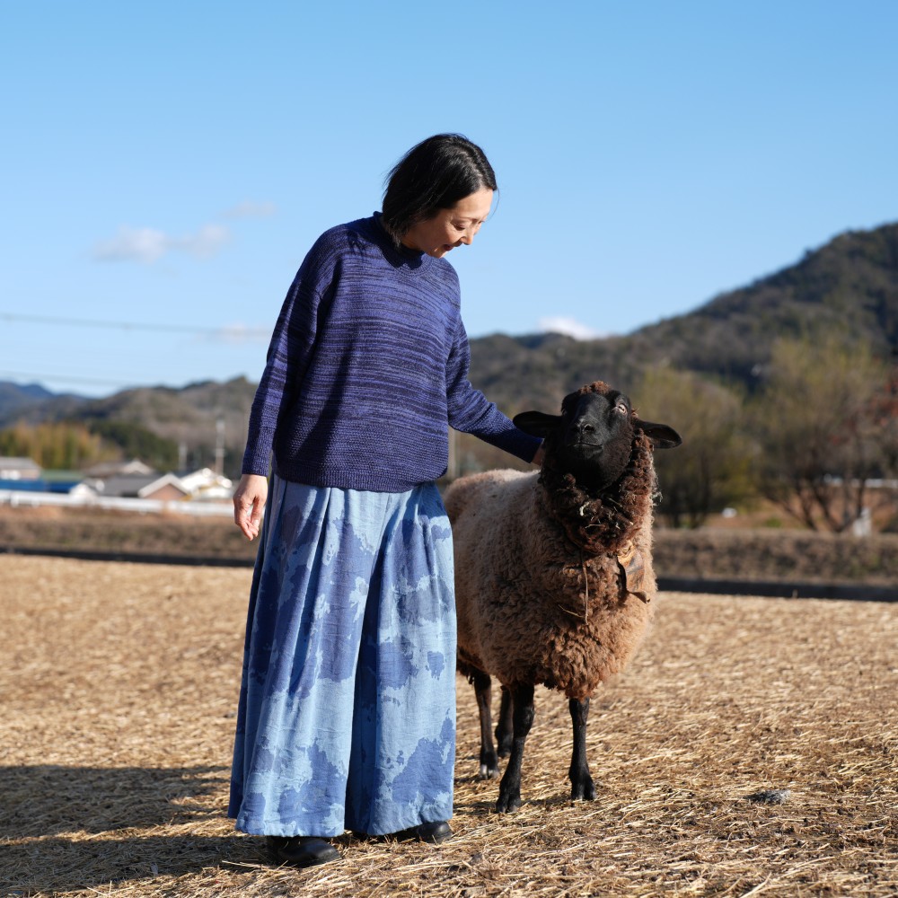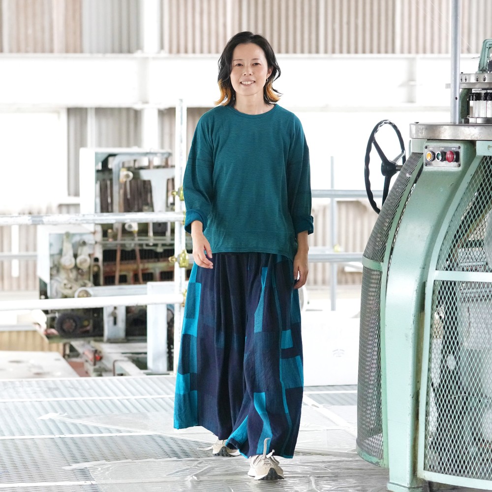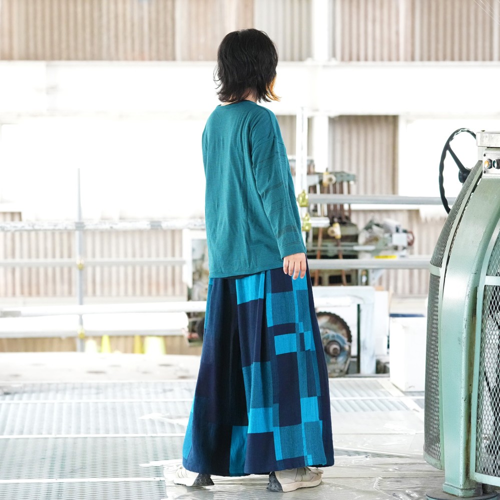 It’s a wide pants that using the textile of tamaki niime simply and luxuriously.