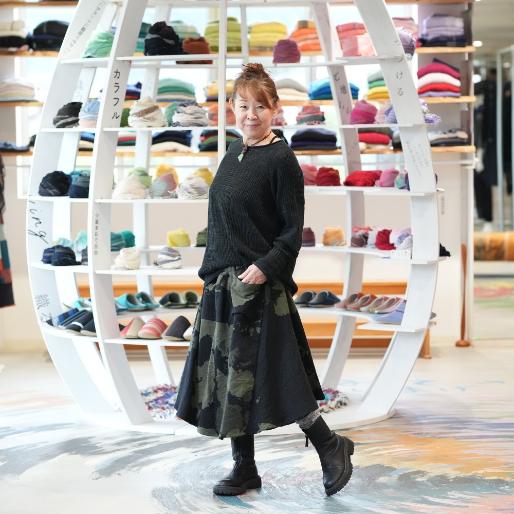We created a fascinating skirt with the atmosphere of tarun pants.