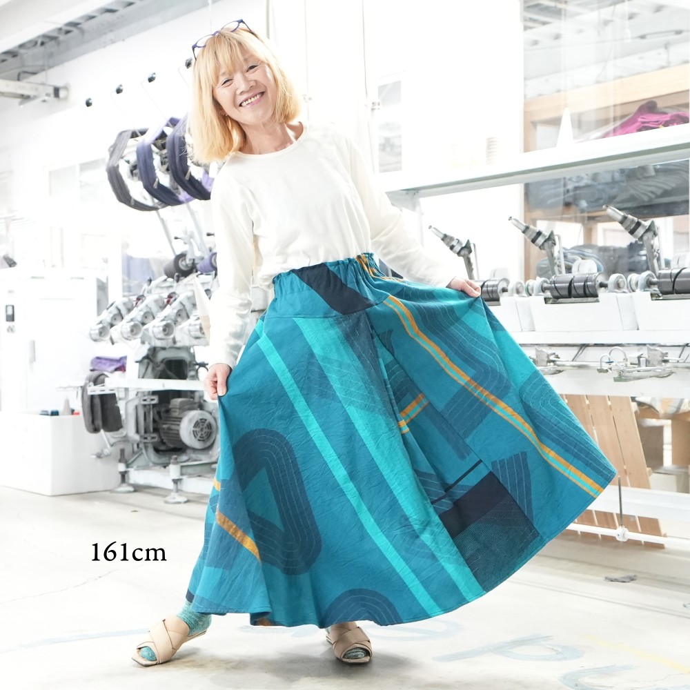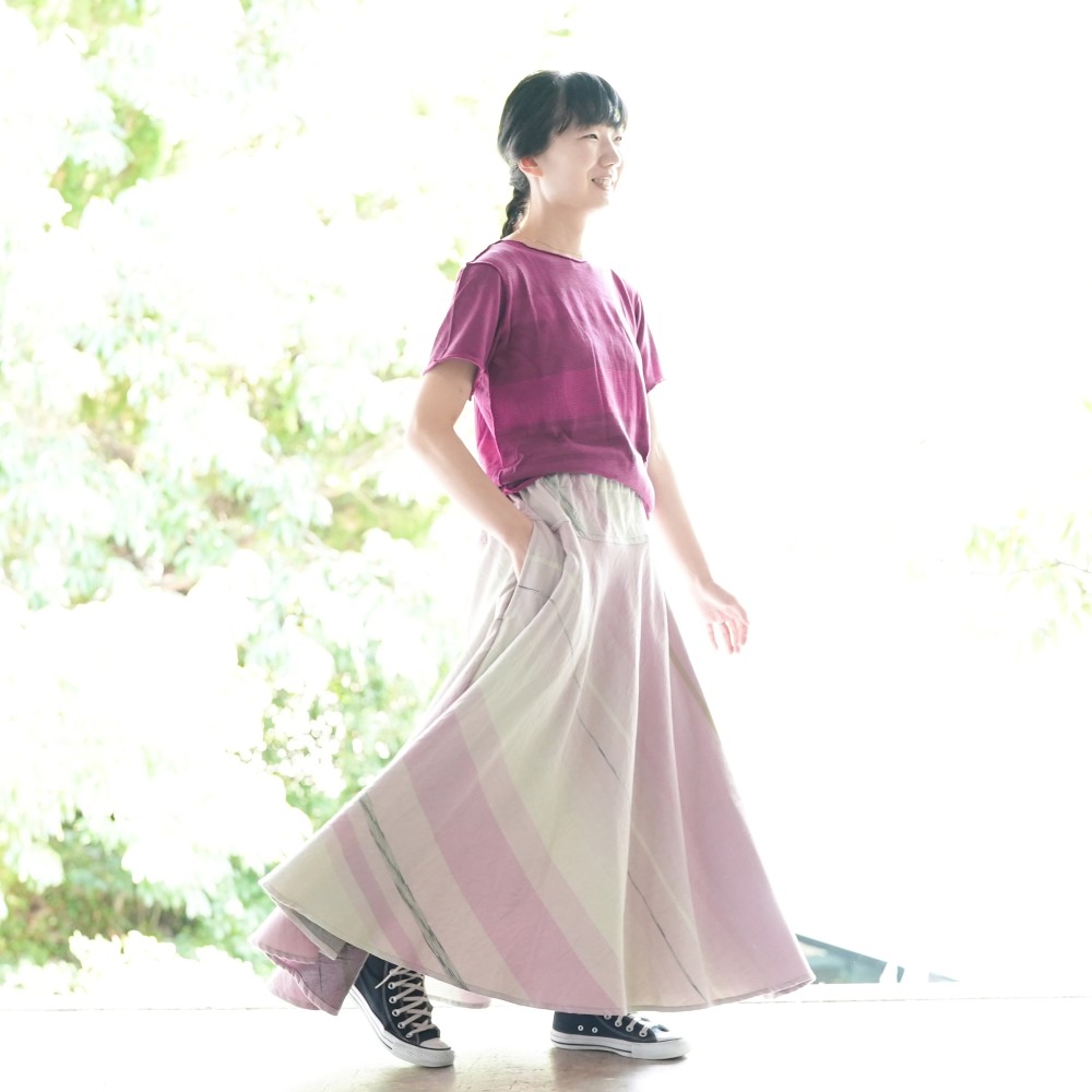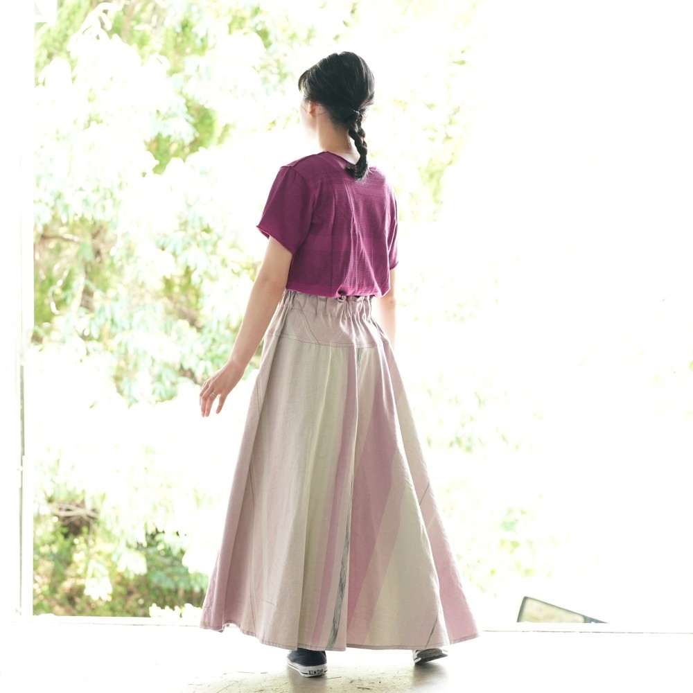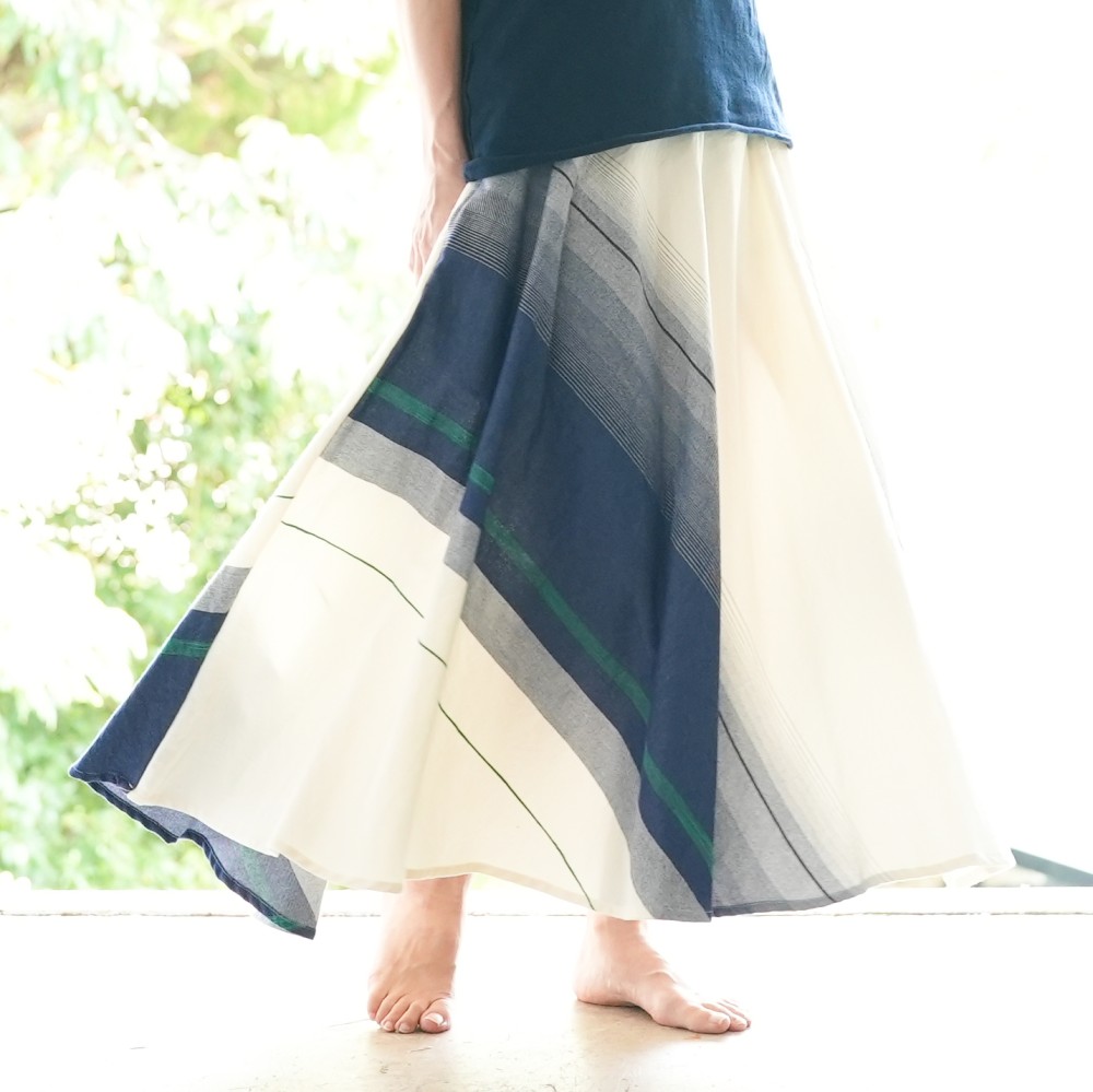 マキシ丈のフレアスカート。
