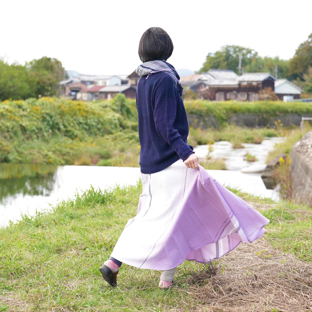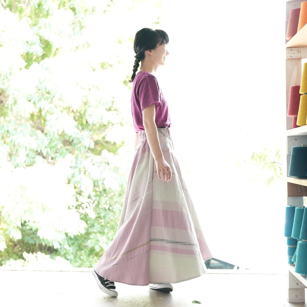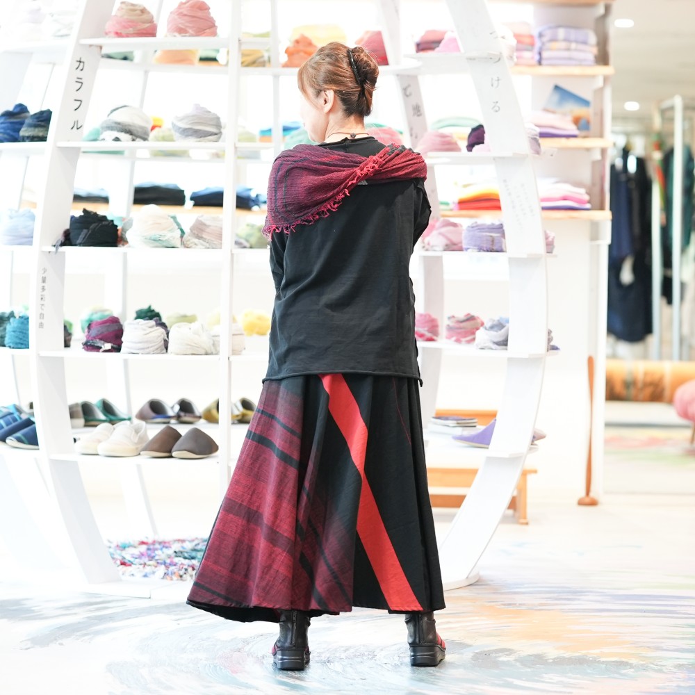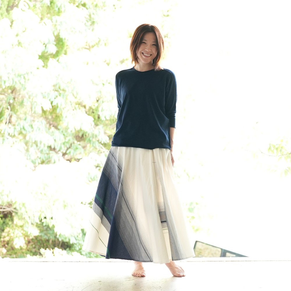 マキシ丈のフレアスカート。