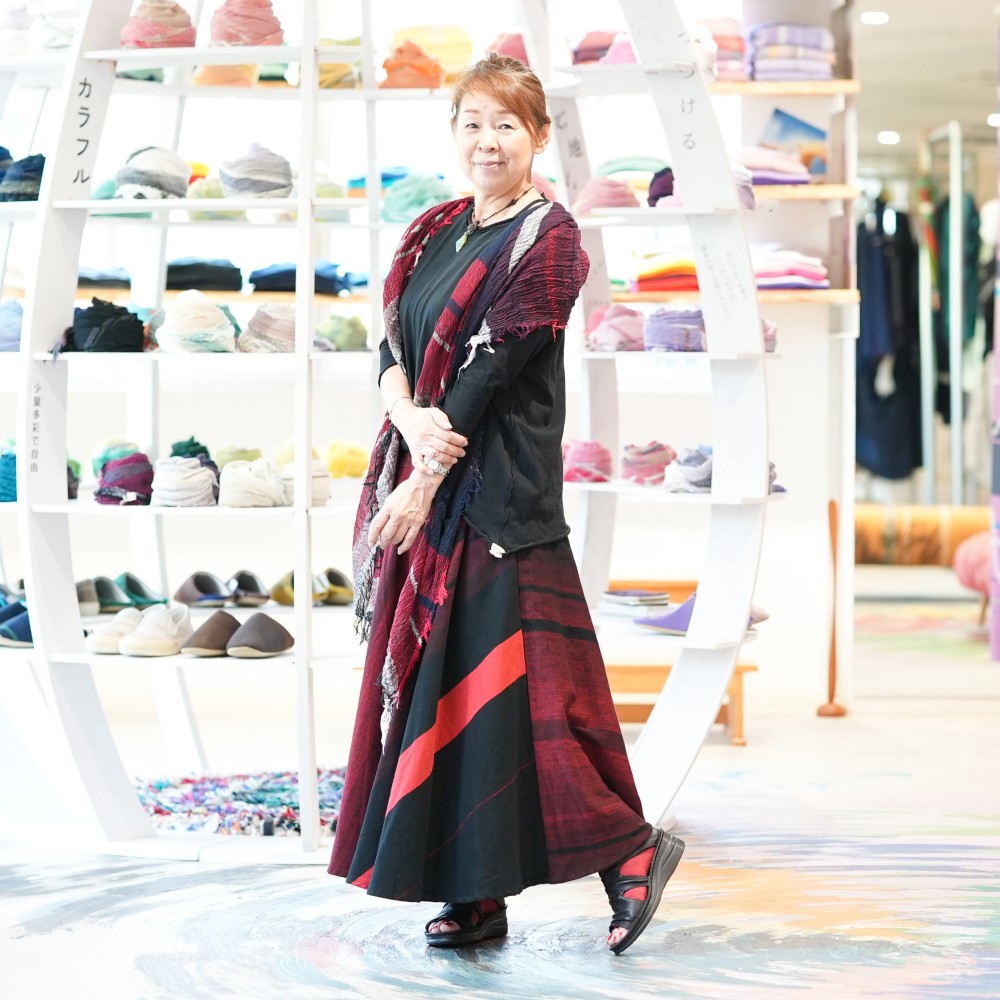 大胆な色使いの生地を
