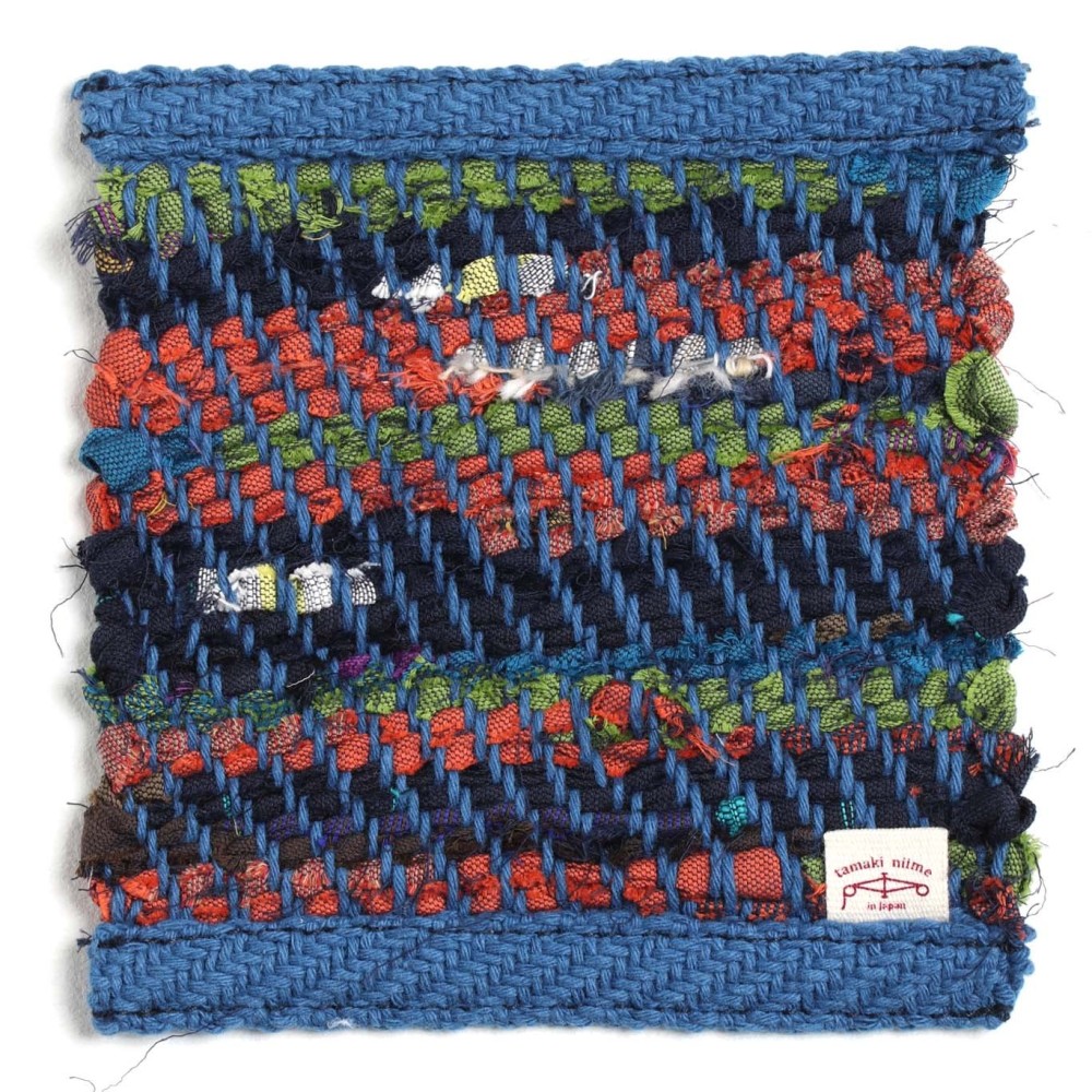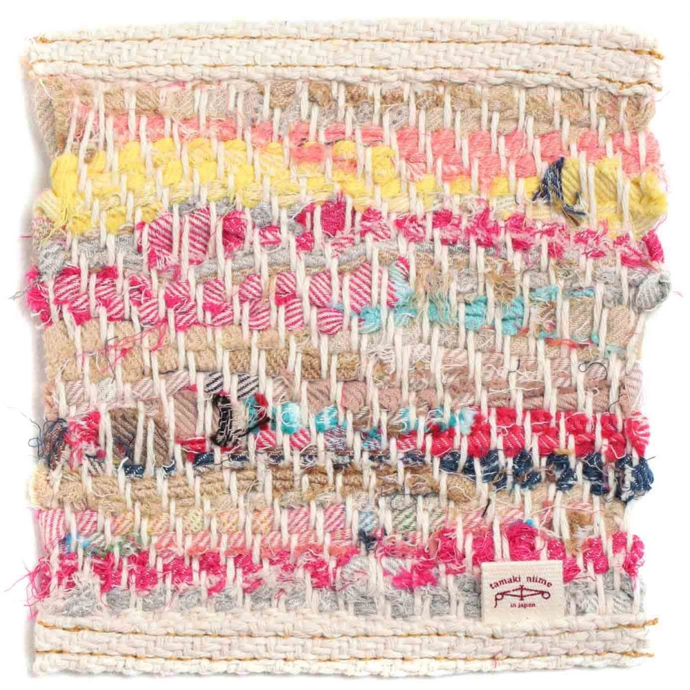 The warp is a plump, thick cotton thread,The weft is leftover cloth from clothing.