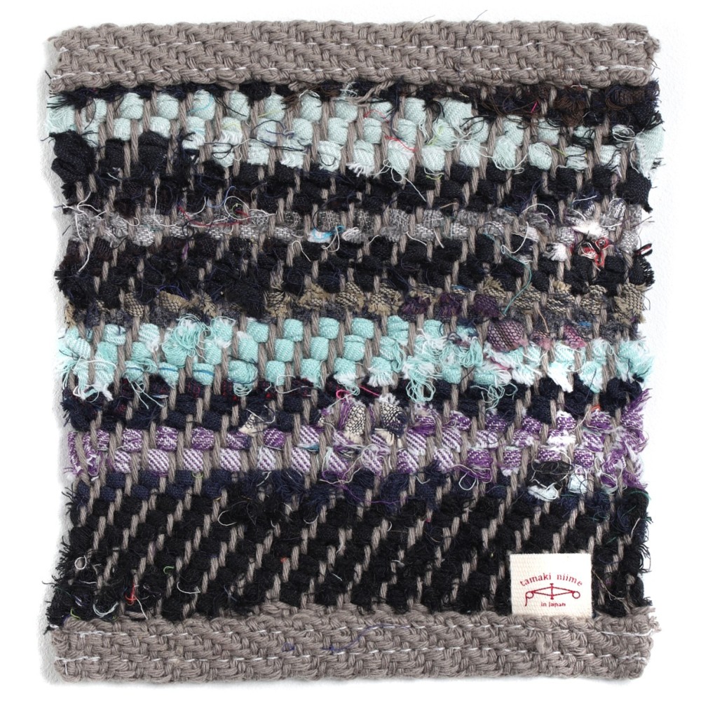 Hand-spun cotton yarn is used for the warp, and left-over fabric from creating garments is used for the weft.