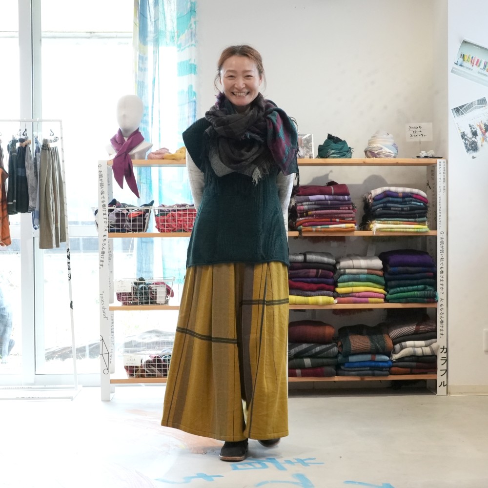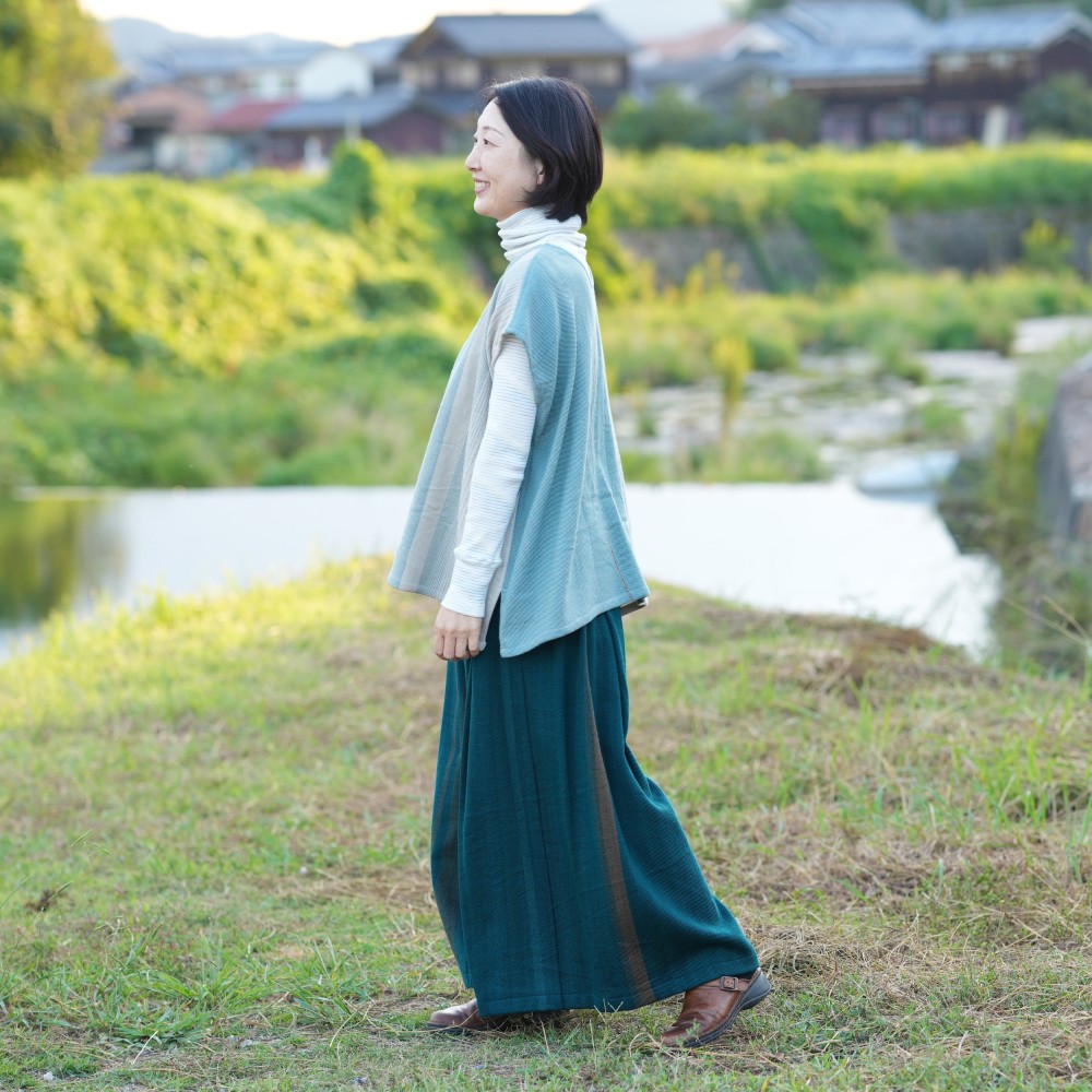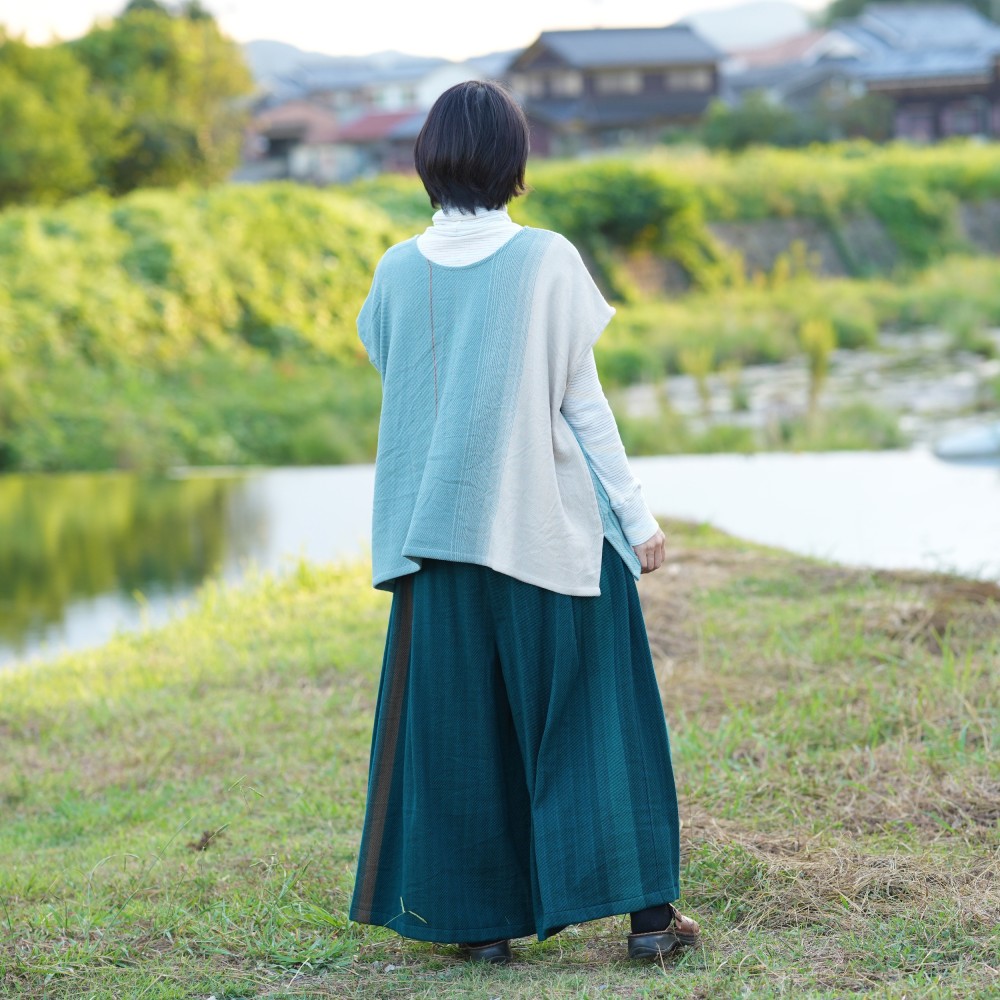 It’s a wide pants that using the textile of tamaki niime simply and luxuriously.