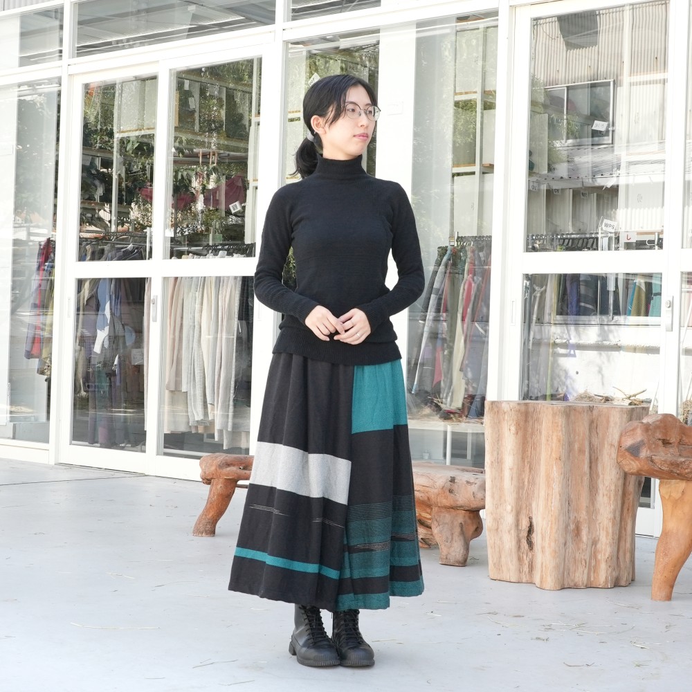 Warm and gentle touch wool that we knitted slowly and loosely.