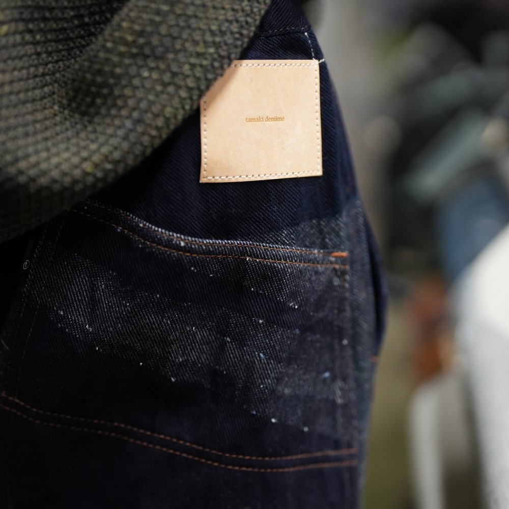 シンプルな見た目なのに、綾目を途中で切り替えてさりげない柄を創る、こだわりのデニム。KINGの綾目の切替は手動で完全ランダム。綾目の向きによって色の見え方や経年変化が違ってくる。こんな自由なデニムはtamaki niimeならでは。