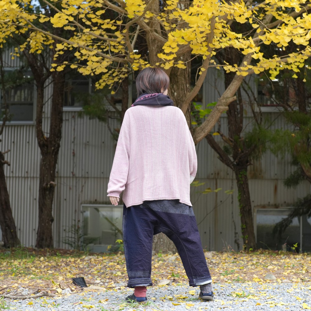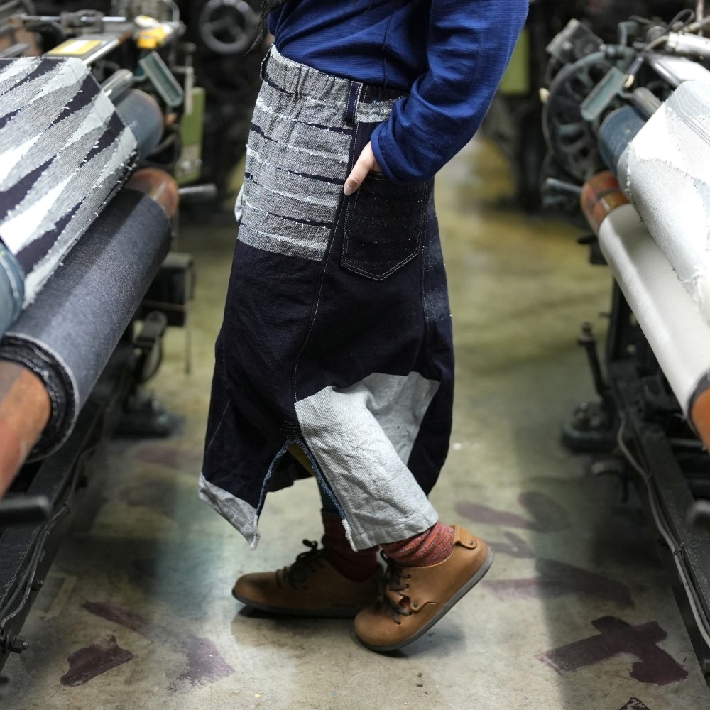 これまでつくりあげてきたデニムの中でも群を抜いて、やわらか。綾織をベースに、色が主役になるように緯糸を表地にがっつりと出しきれいに見える形、大きさ、配置を追及しました。刺し子のような、手仕事感のある色が主役のデニム。