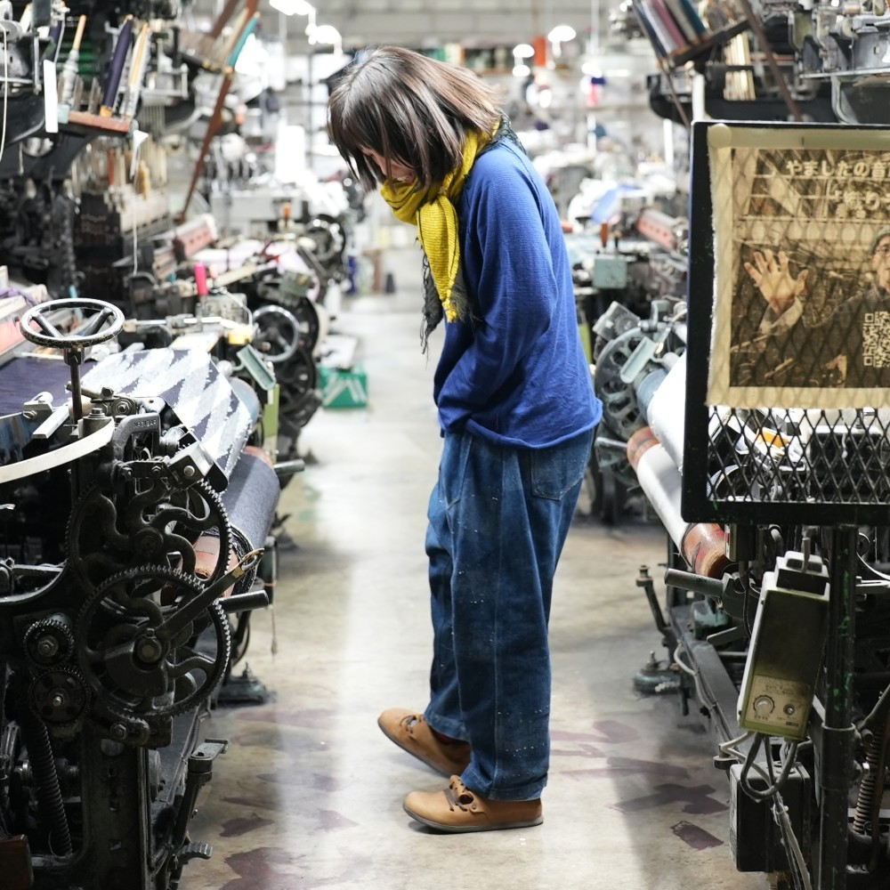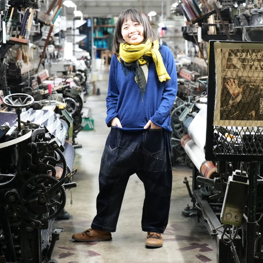 tamaki niimeのLabにて1960年代の力織機でゆっくりと織り上げ、色味や風合いがそれぞれ異なるデニム。