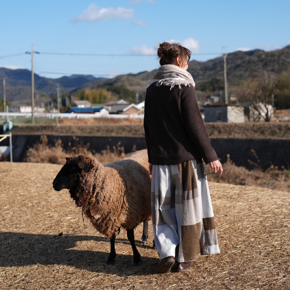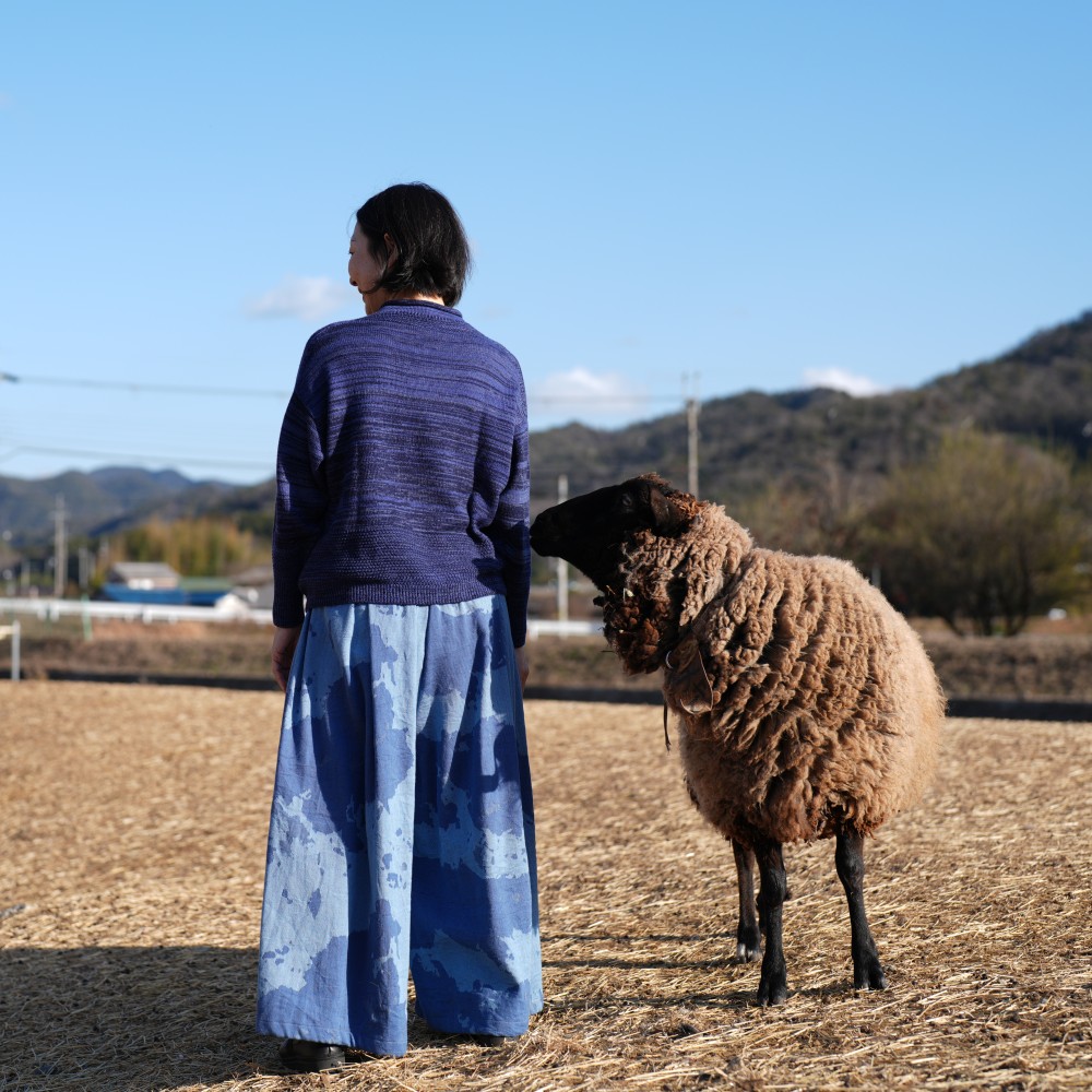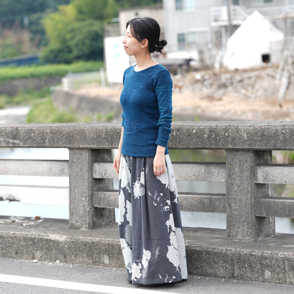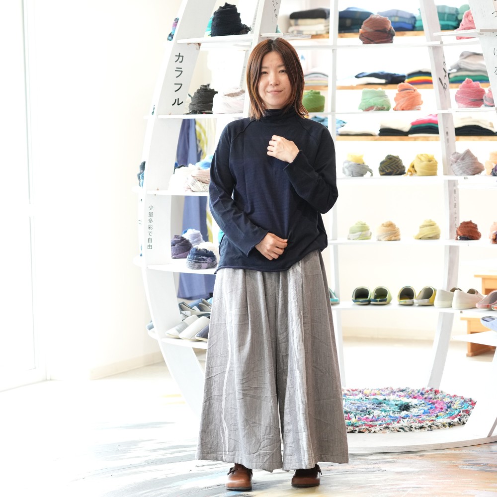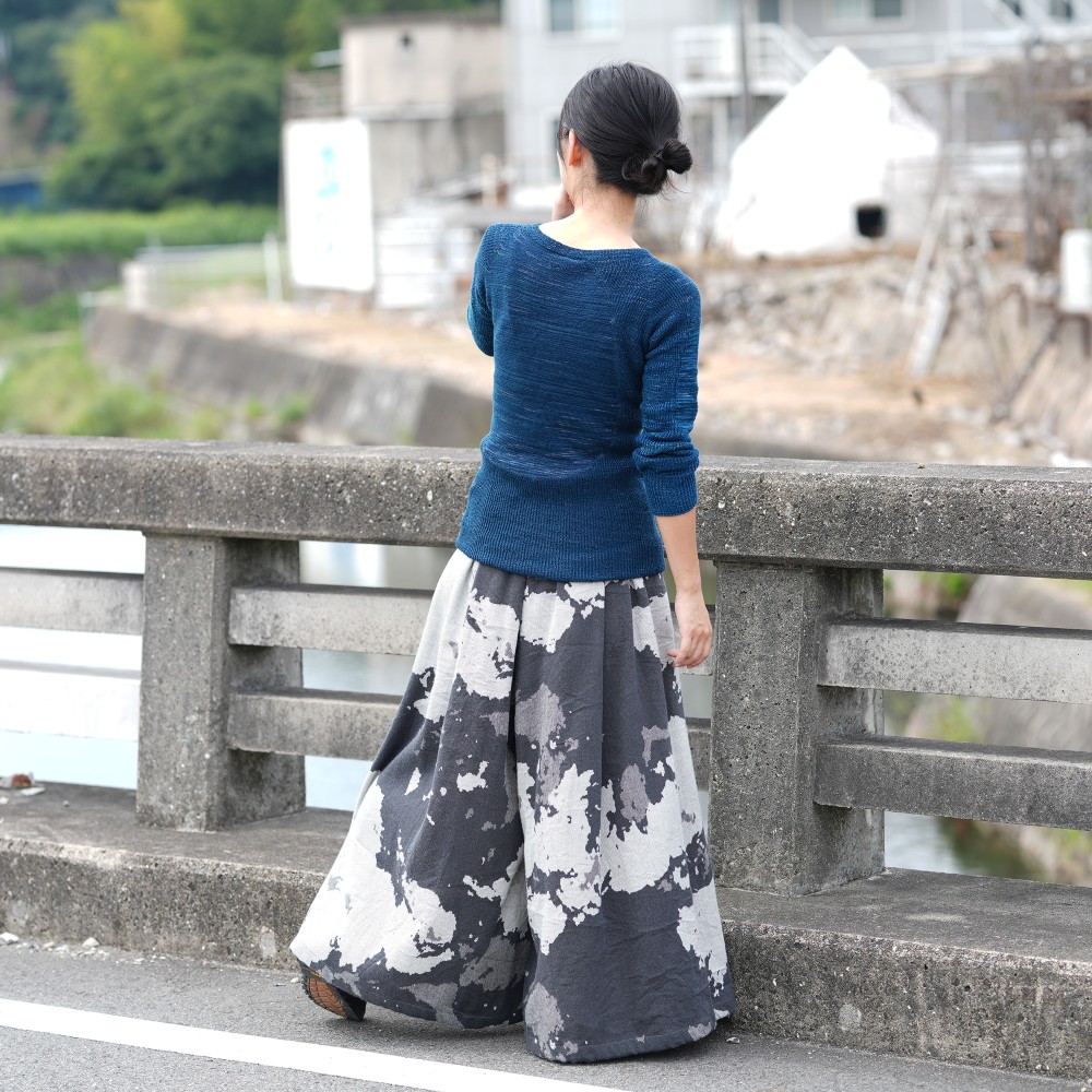 It’s a wide pants that using the textile of tamaki niime simply and luxuriously.
