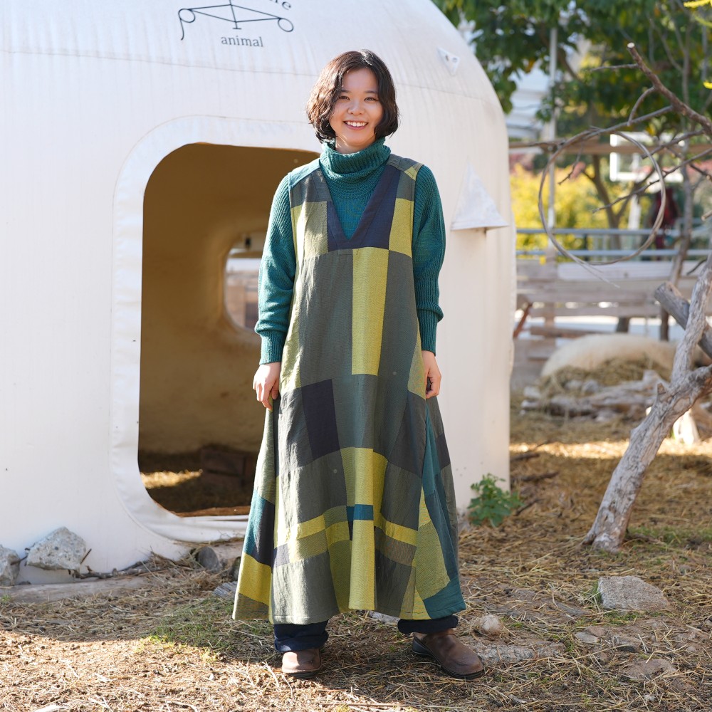 Make use of the bold pattern and fabric texture, we created an A-line jumper skirt.