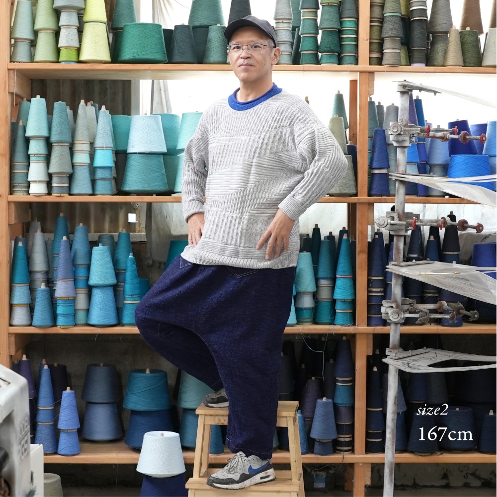 By focusing on "softness" to the fullest, we have created a pair of denim that is both easy and cool. Thick yet light and gentle to the touch. By incorporating horizontal double weave, which joins two pieces of fabric based on twill weave, and creating fine grounding points, the fabric has the elasticity of a knit. Stretchy and soft, exceeding the limits of conventional denim. Fabrics that combine slub yarn with non-twist yarn are also available.