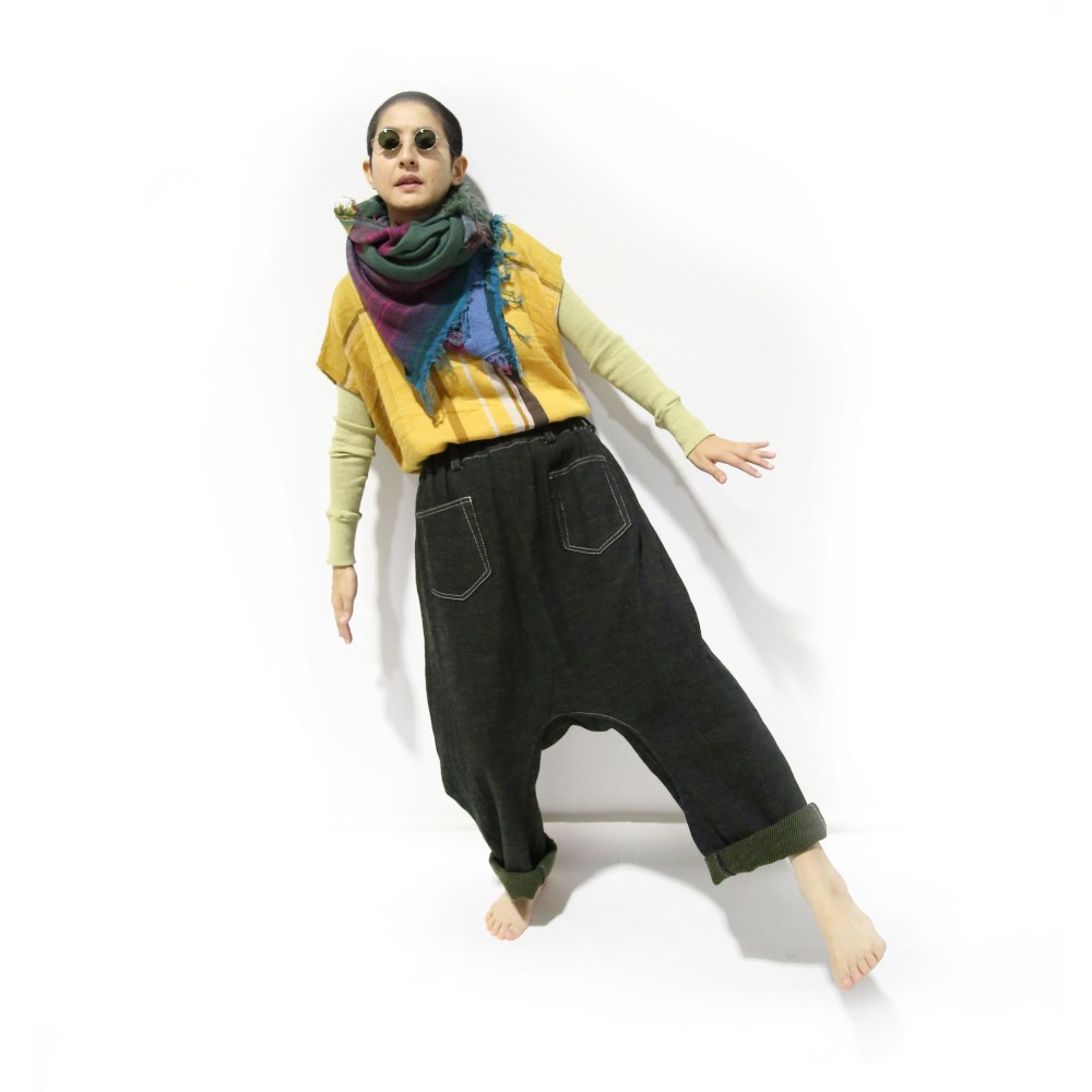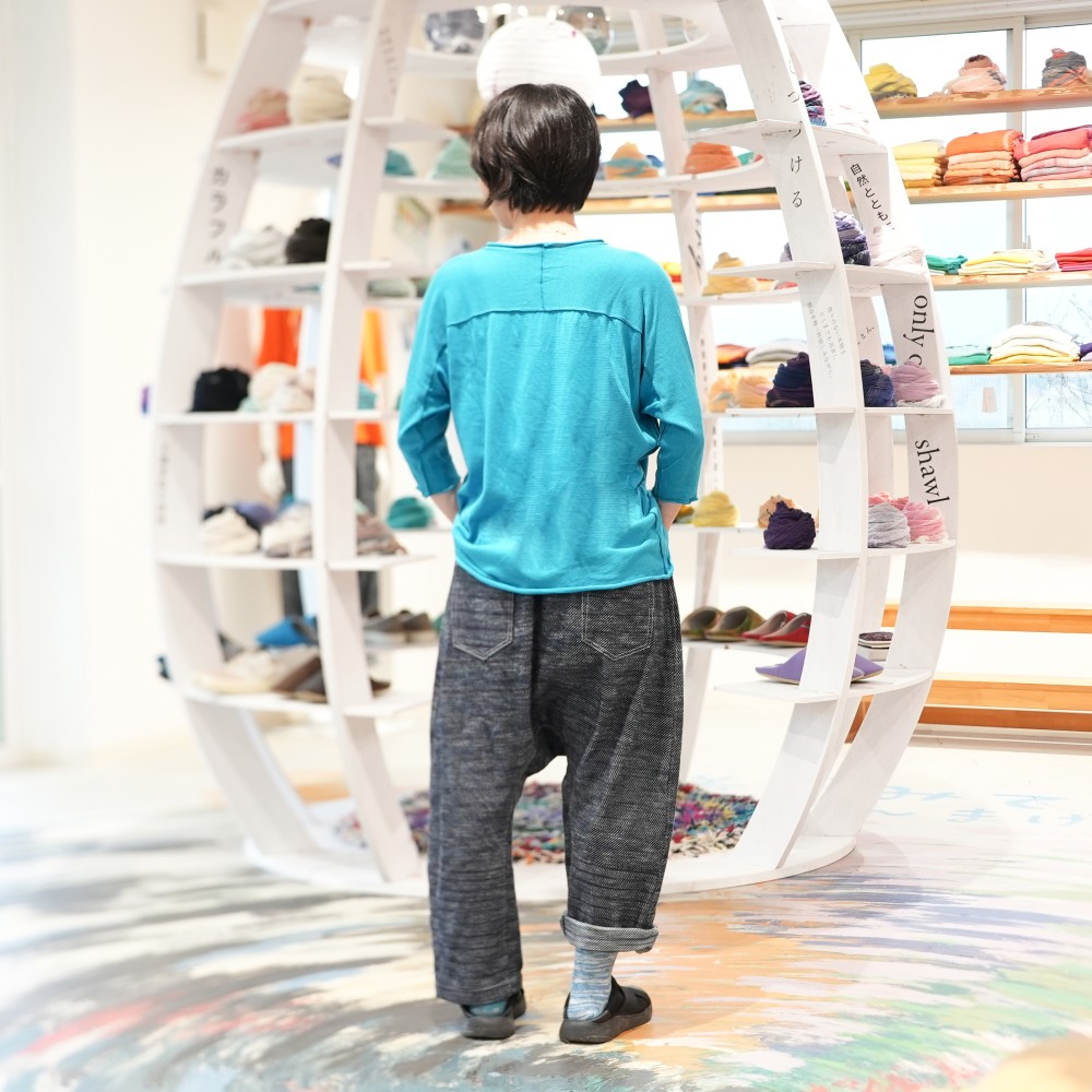 Like Sarouel pants, the rise is deepened to give a loose feeling.