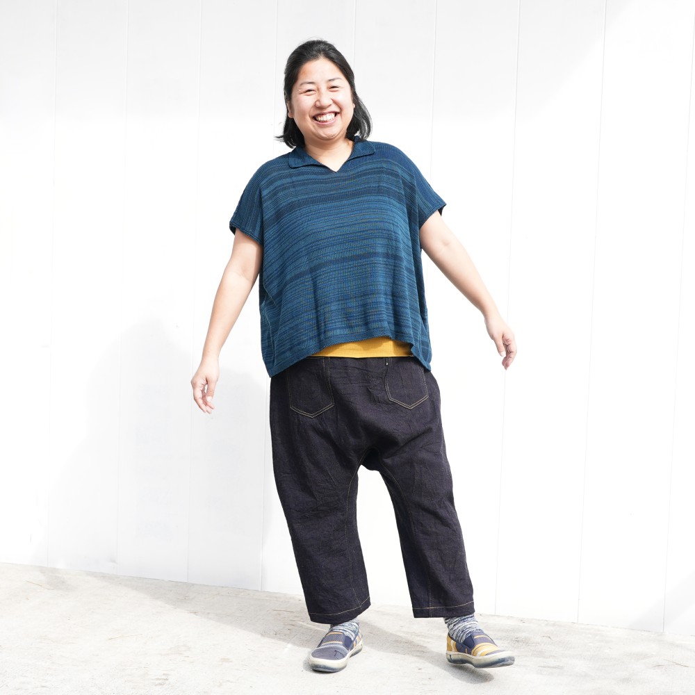 これまでつくりあげてきたデニムの中でも群を抜いて、やわらか。綾織をベースに、色が主役になるように緯糸を表地にがっつりと出しきれいに見える形、大きさ、配置を追及しました。刺し子のような、手仕事感のある色が主役の、デニム。