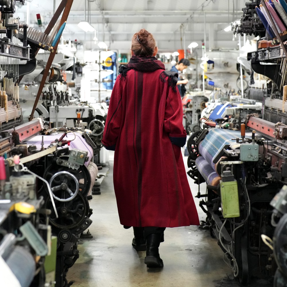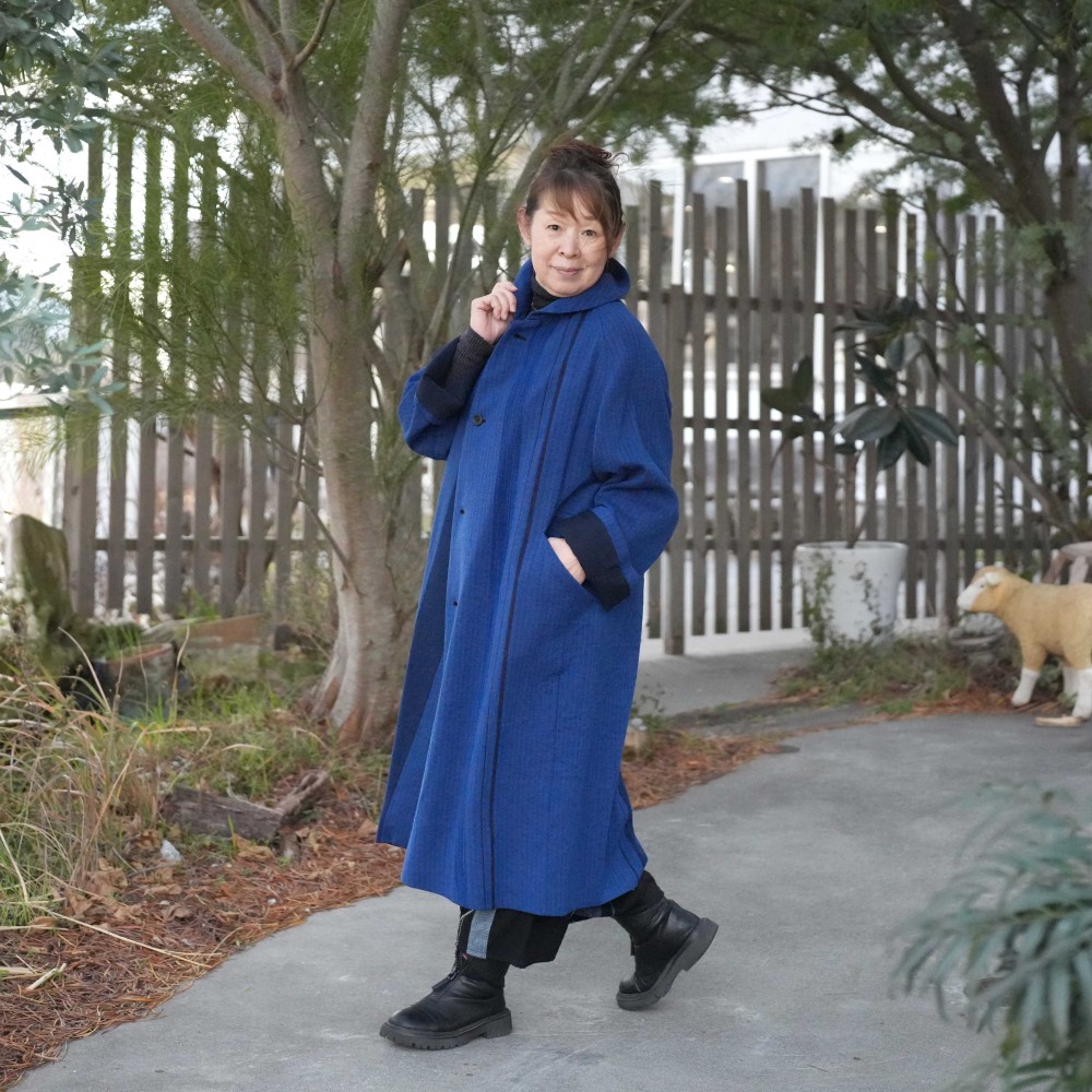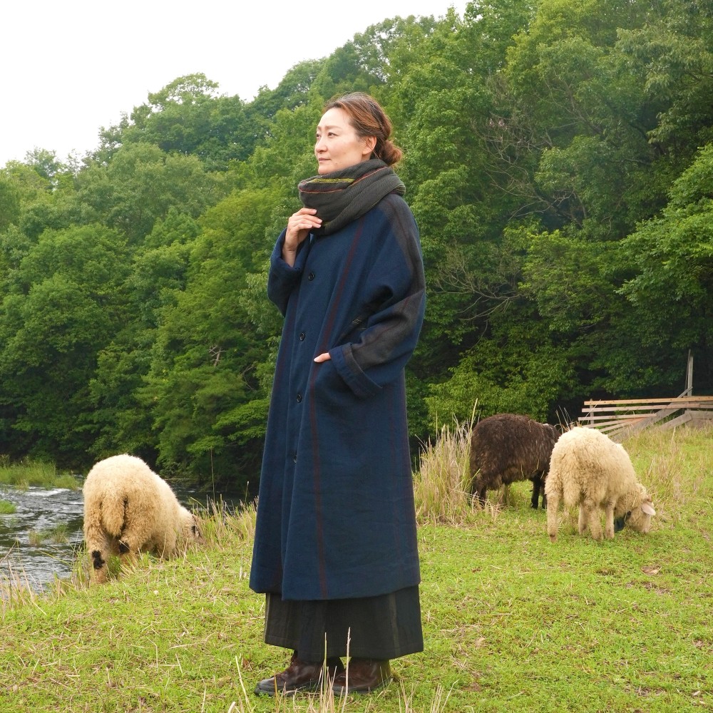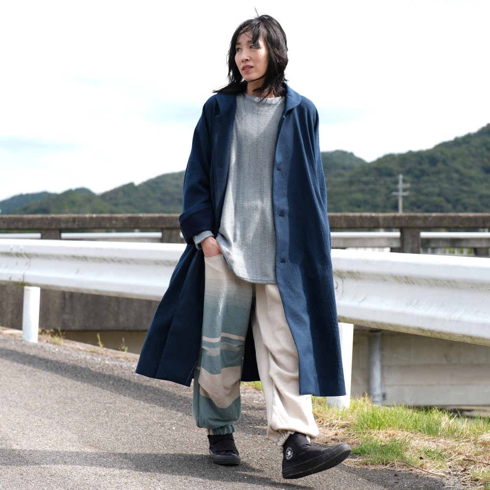 A luxurious coat constructed from a single length of cloth that wraps around, this is an heirloom piece made to be worn many times. The simple, minimalist design allows the fabric’s color and pattern to be fully appreciated. The collar and coat length are thoughtfully considered to suit both men and women.