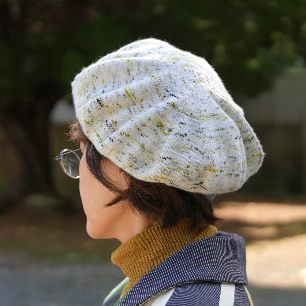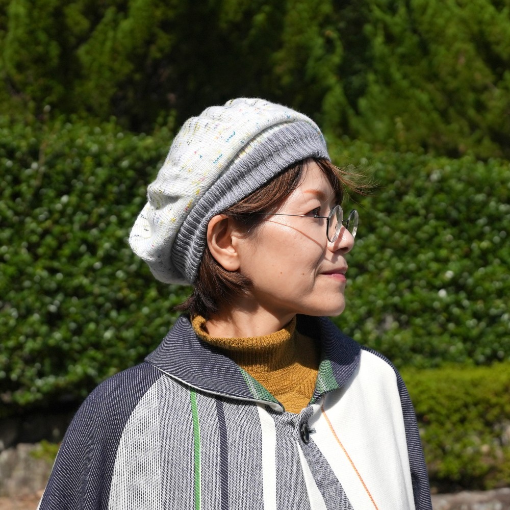 A simple shape that anyone can easily wear and please enjoy the knitting method, texture and color matching.