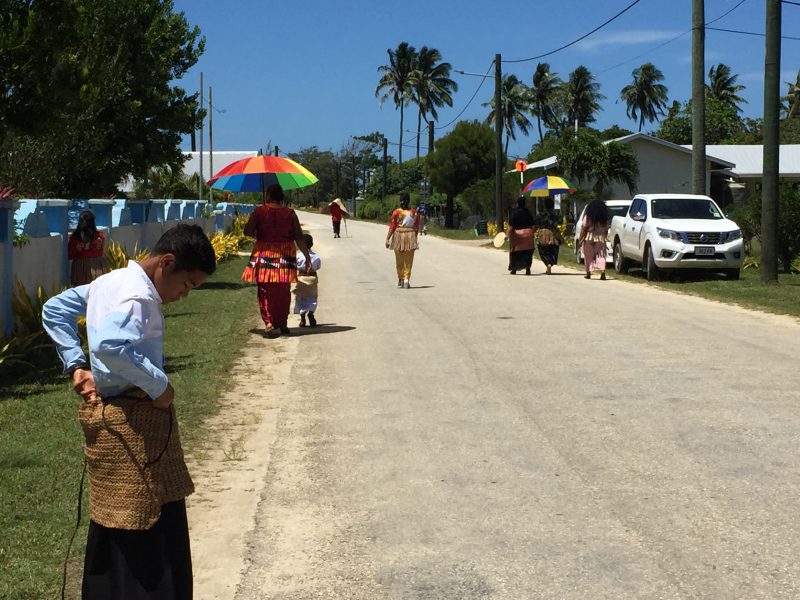 そして、教会にはみんな特別綺麗な正装で出かけます。小さな子供は「結婚式?」と思わせるドレスを着ています。普段は「畑仕事してきました!」の合図がついた全身土だらけの男性も、日曜日は必ずパリッとアイロンをかけたワイシャツに黒いトゥペヌ(巻きスカート)、トンガ人必須のタオバラ(パンダナスで編んだ腰巻)です。